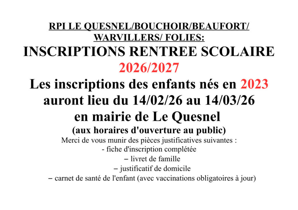 - Inscriptions rentrée scolaire 2026/2027