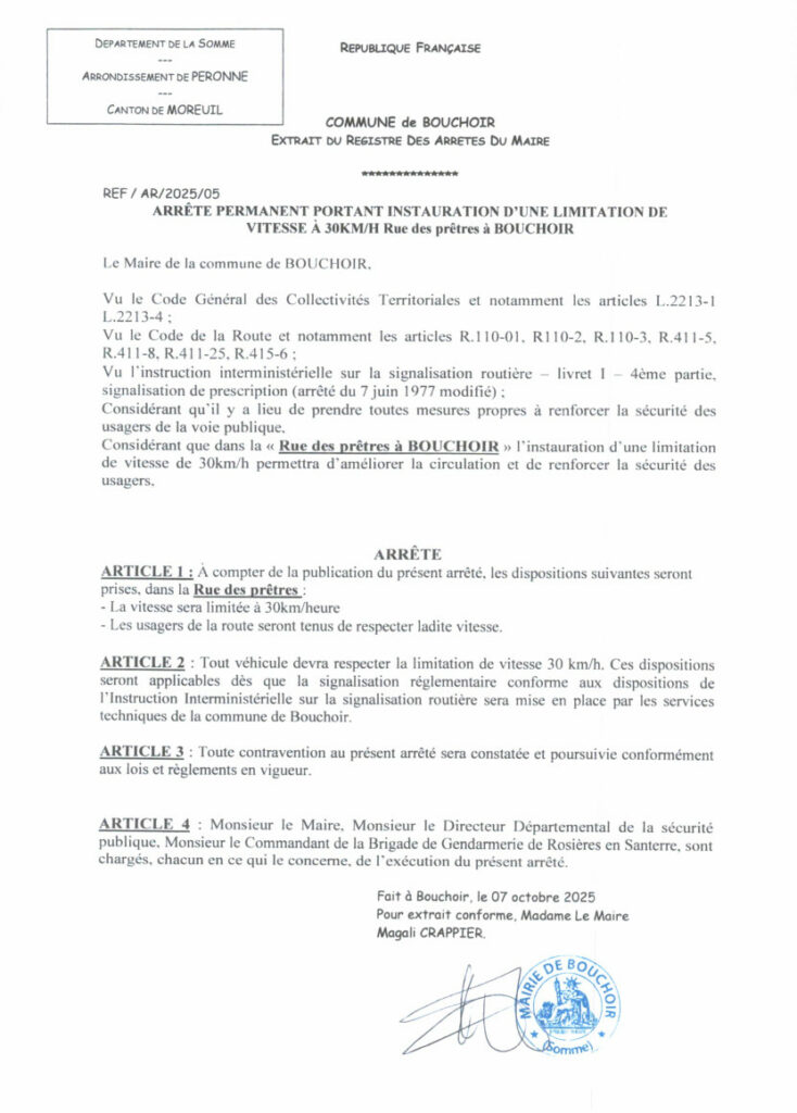 - Instauration de la limitation de vitesse à 30km/h « Rue des prêtres »